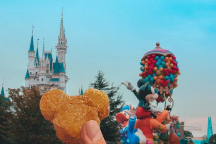 Enjoying a Mickey Nugget whilst watching the “Happiness Is Here” daytime parade at Tokyo Disneyland.